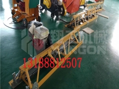 该机为框架组合式,设有1米和2米单节,可根据工程需要而定,并且节与节之间采用超强度万向节联接可调成水平或5°-10°拱型,适合不同的施工要求。动力采用汽油机带动,偏心块高速旋转,带动机架对混凝土进行振捣。机架两端装有离合式绞轮,可以极其轻松地掌握工作速度。